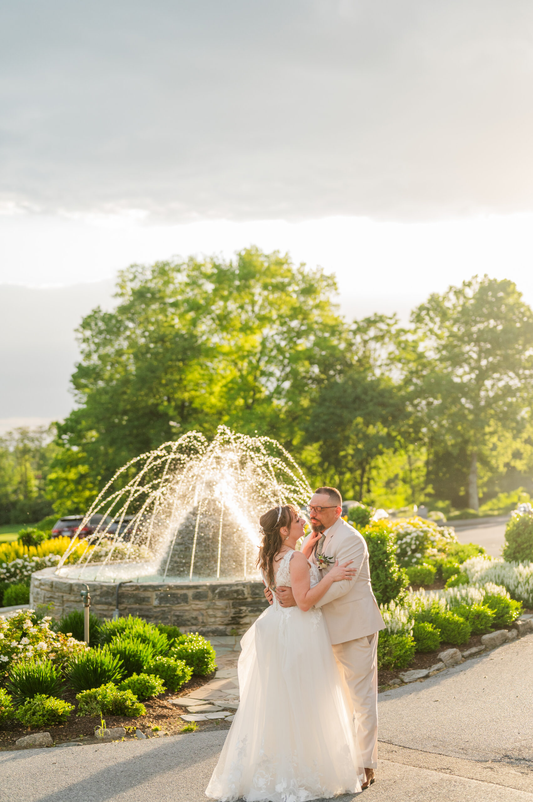 As the sun dipped lower, Angie and Pete shared quiet moments together, framed by lush gardens and a glowing fountain backdrop, an unforgettable way to celebrate the beginning of their next chapter.